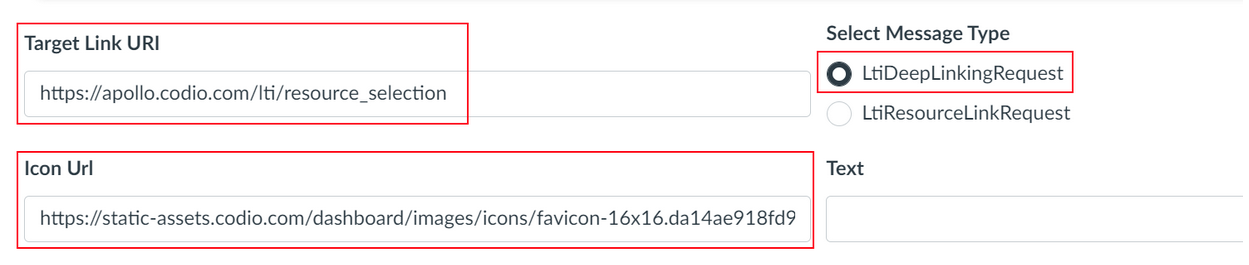 From Codio, under LTI 1.3 Integration, copy the Redirect URL |