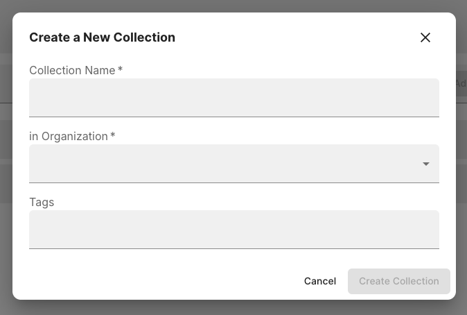 Then click the New Collection button in the top right. Give your collection a name and click Create Collection.